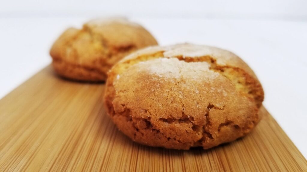 Оригинальное сдобное печенье со вкусом и ароматом топленого молока, привлекательной хрустящей поверхностью, имеющей характерные трещины, и тянущейся внутренней структурой.