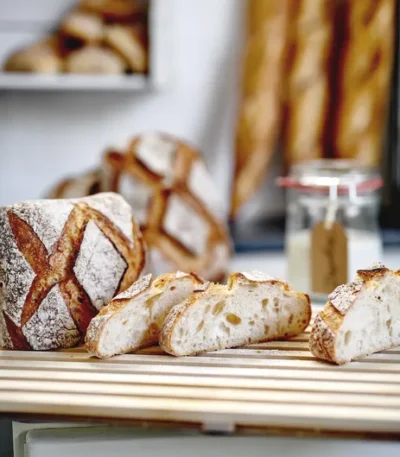 Хлеб на закваске обладает слегка сладким солодовым вкусом с кисломолочными, фруктовыми и поджаренными нотками ореха и кофе. Закваска придает мякишу изделий приятный темный цвет.
