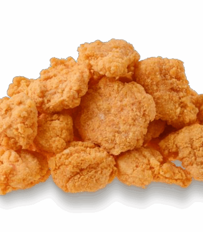 Куриное филе, нарезанное кусочками, размером с укус в хрустящей панировке Готовый продукт, из-за своего внешнего вида, получил название «куриный попкорн»