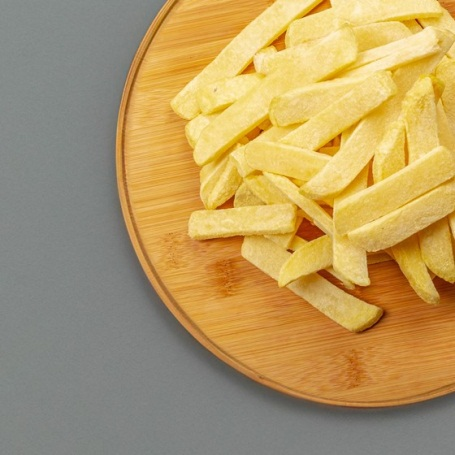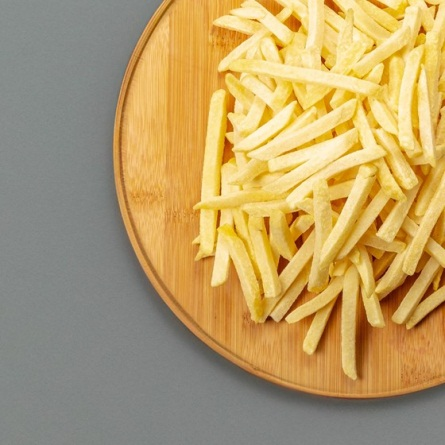 Картофель фри — это предварительно обжаренные и нарезанные картофельные бруски средней толщины, покрытые аппетитной хрустящей панировкой, которая при жарке образует