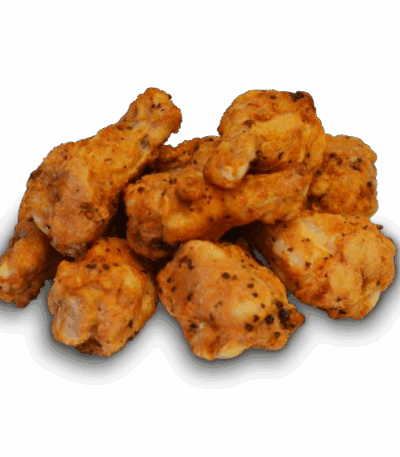 Куриное филе, нарезанное кусочками, размером с укус в хрустящей панировке Готовый продукт, из-за своего внешнего вида, получил название «куриный попкорн»