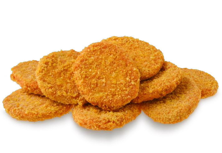 Состав: мясо бескостное кусковое цыплят-бройлеров, вода питьевая, кожа цыплят- бройлеров, панировочная смесь (сухари панировочные (мука пшеничная, соль, дрожжи, растительное масло (рапсовое), куркума, экстракты пряностей (паприки, куркумы)), кукурузные хлопья (содержат глютен)), масло растительное, смесь панировочная (мука пшеничная, соль, загуститель Е412, картофельный крахмал), крахмал кукурузный, мука пшеничная, клетчатка растительная, крупа манная, соль пищевая выварочная йодированная (соль пищевая выварочная, йодат калия, агент антислеживающий Е536), лук сушеный, перец чили молотый, чеснок сушеный, перец черный молотый
