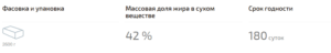 Массовая доля жира в сухом веществе 42 %.