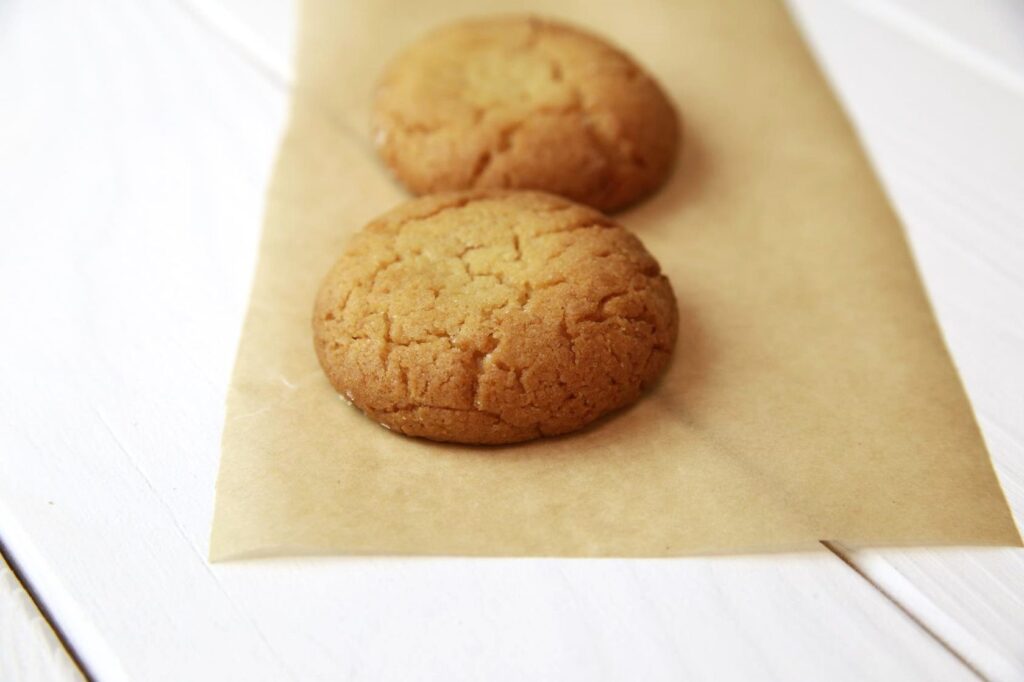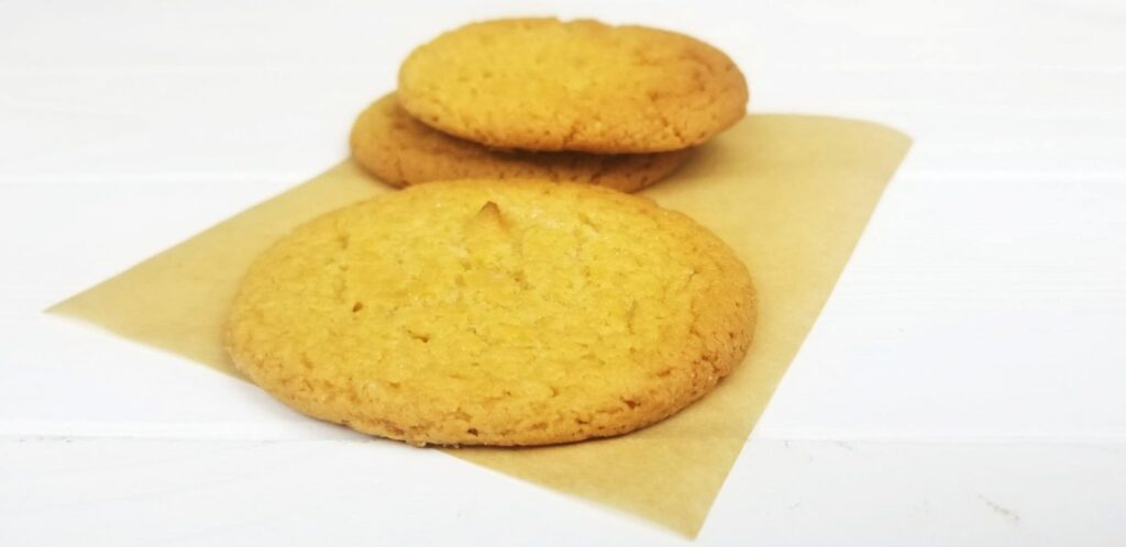 Оригинальное пышное сдобное печенье с влажной тянущейся внутренней структурой, крупной пористостью и лимонным вкусом.