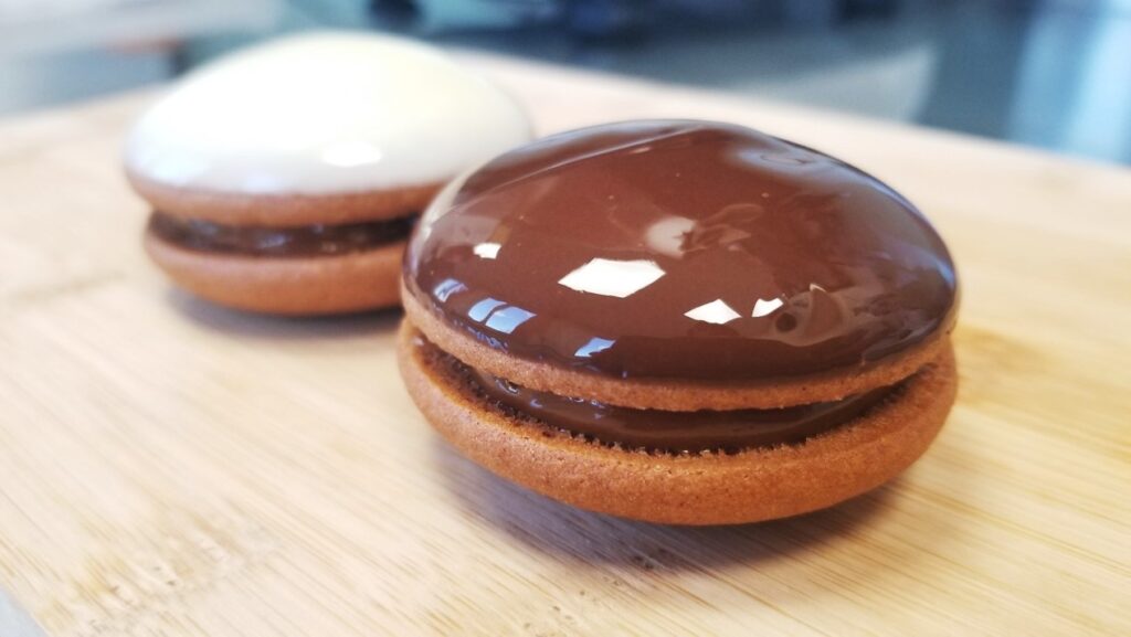 Оригинальное и популярное мягкое печенье «Вупи пай» (Whoopie pie) со вкусом молочной карамели. Рекомендуется подавать с прослойкой из вареной сгущенки.