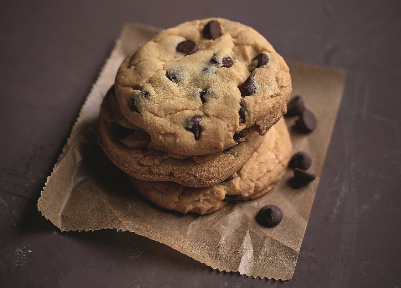 В дежу миксера загружают жидкие компоненты, затем, сухие и перемешивают лопаткой на средней скорости в течение 8 — 10 мин. В конце замеса можно добавить шоколадные капли. Готовое тесто формуют в шарики по 40 г на кондитерский лист на небольшом расстоянии друг от друга (5-7 см) и отпекают при температуре 170 — 190 ̊С в течение 17- 25 минут.