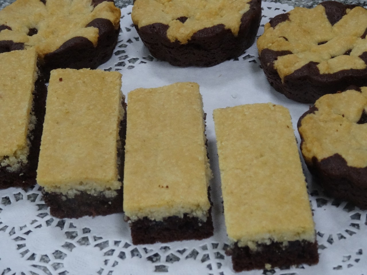 Массу Брауни выложить в рамку для выпечки, сверху выложить предварительна раскатанное тесто криспи. Выпекать 30-40 минут при температуре 160-170 градусов. Охладить. Порезать на порции.