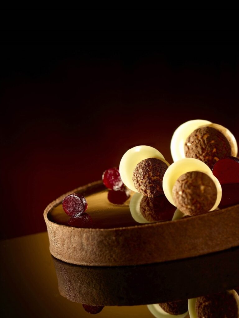 Шоколадная тарталетка с вишнёво-шоколадной начинкой