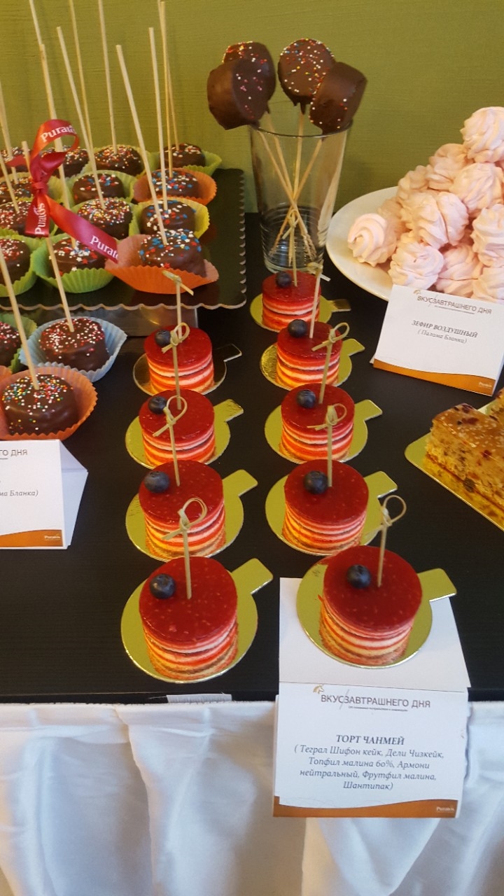 Смешать Теграл Шифон кейк, яйцо и воду. Замесить тесто на высокой скорости в течение 5 мин в миксере венчиком, а затем внести растительное масло и перемешивать в течение 2 мин. Выпекать при температуре 160-200°С в течение 10-30 мин в зависимости от тестовой заготовки. На декоративный рулетный п/ф перед выпечкой нанести тонким слоем фигурный рисунок из Фрутфил малина Д.