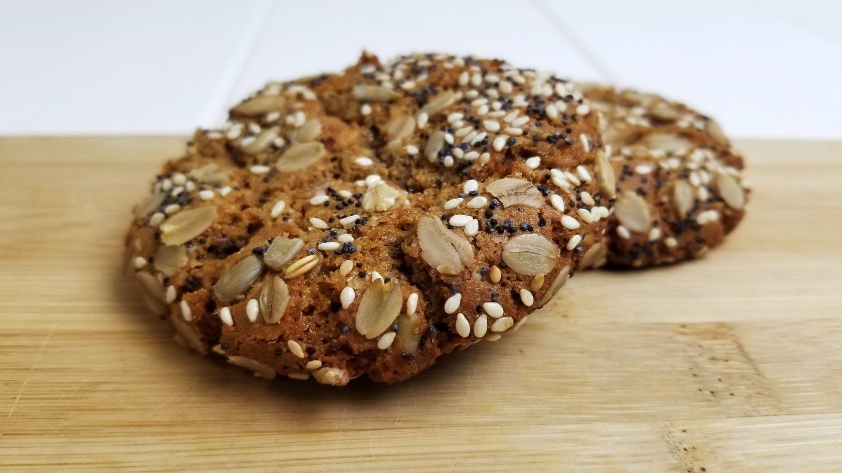 Оригинальное печенье с тянущейся текстурой, характерными трещинами и включениями из овсяных хлопьев, изюма и семян подсолнечника, обладает пикантным оттенком солодового экстракта.